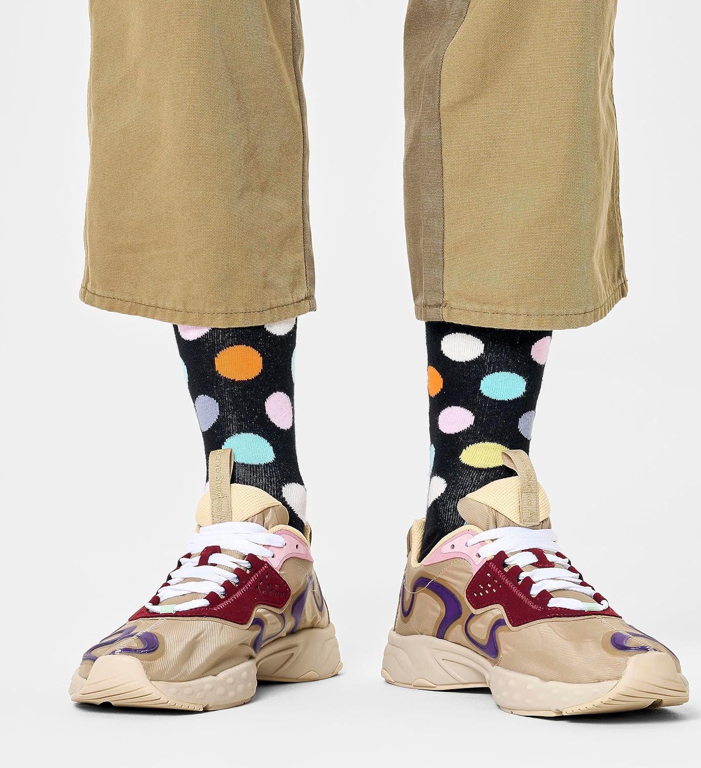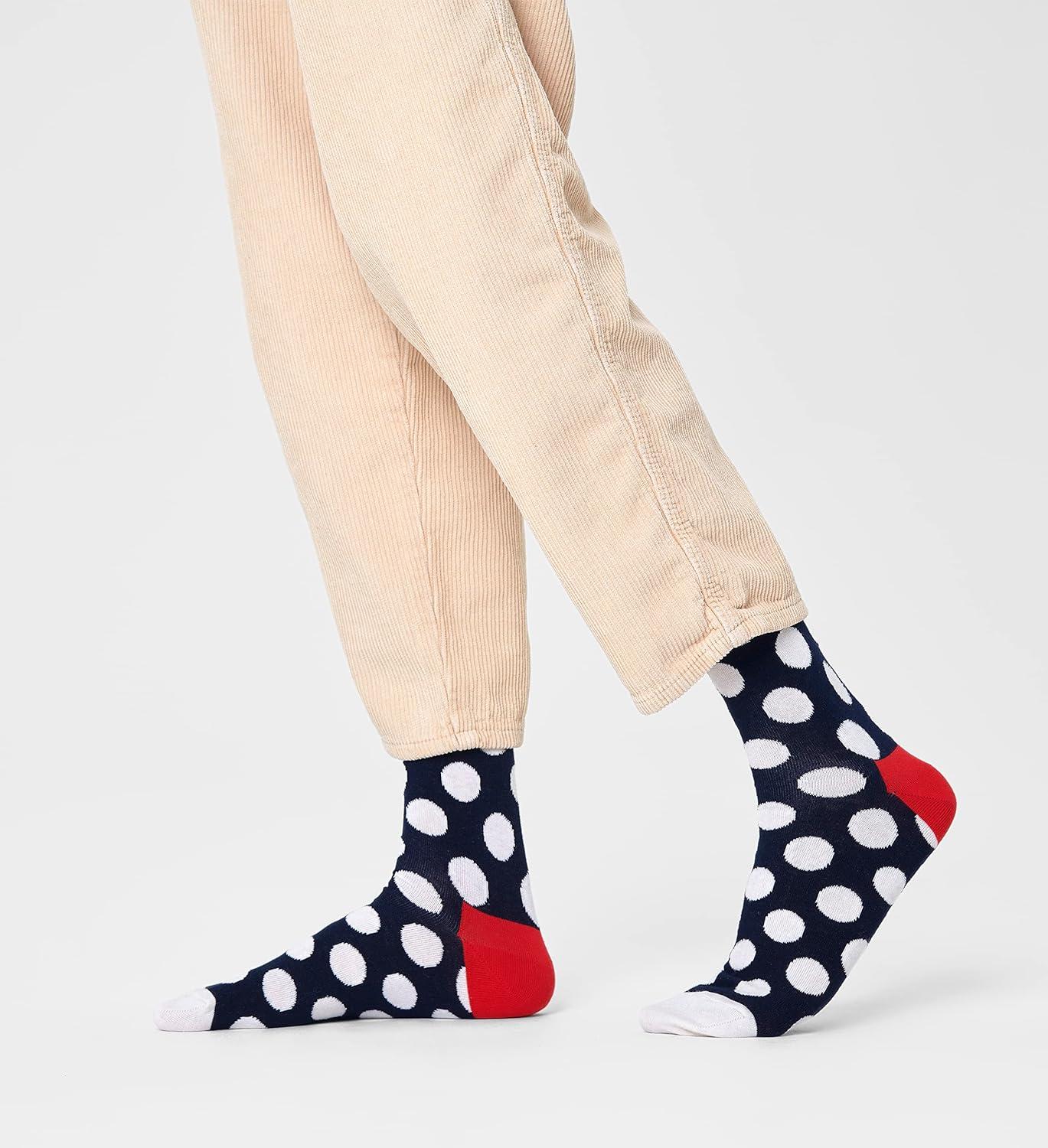 Happy Socks Classic Big Dot Design Crew Socks, for Men and Women, made with Sustainable Organic Cotton – Multicolor – size Small/Medium – 2-Pack